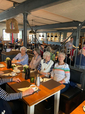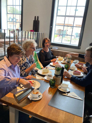 Nach der Besichtigung setzten wir uns im gemütlichen Restaurant „Melkhus“ zusammen. Dort genossen wir eine Kaffee- und Kuchenrunde. Es gab Zeit zum Austausch und Fotos machen, und schließlich erkundeten wir noch die beiden Hofläden auf dem Gelände.