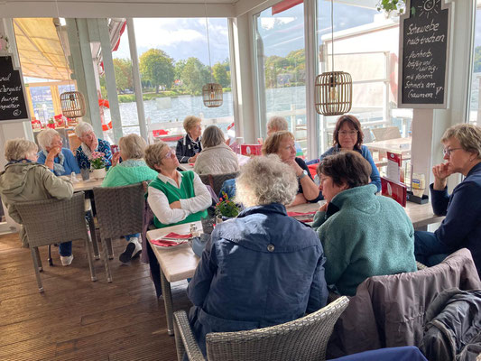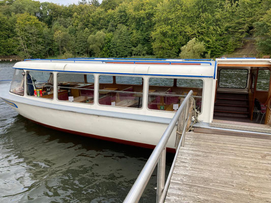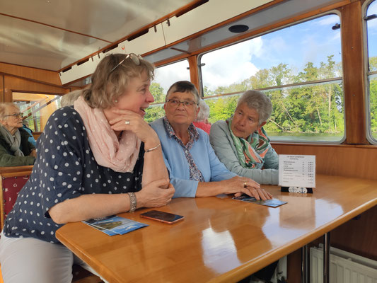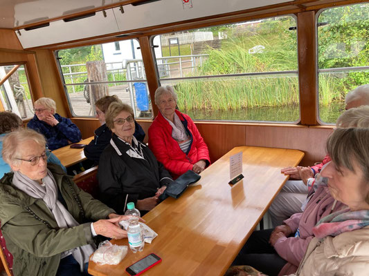 In Fegetasche bestiegen wir das Schiff und setzten die Fahrt fort mit der 5-Seen-Route über Edebergsee, Höftsee, Behlersee, Langsee und Dieksee. Am Ufer stiegen Silberreiher auf, und in der Mitte des Sees sahen wir viele Kormorane. Am östlichen Ufer des Dieksees erreichten wir schließlich Malente-Gremsmühlen. Wir kehrten zum Mittagessen in das Restaurant „Bootshaus“ ein.