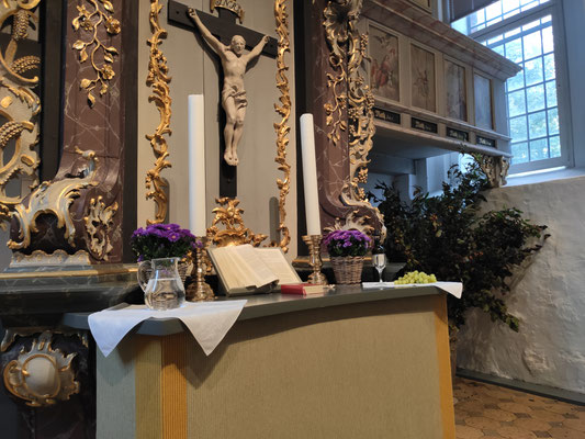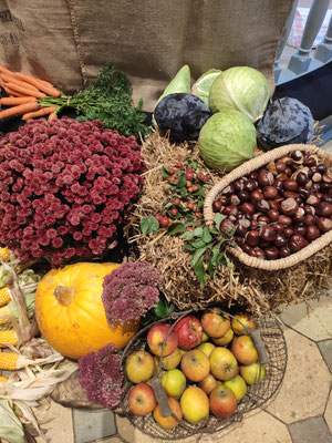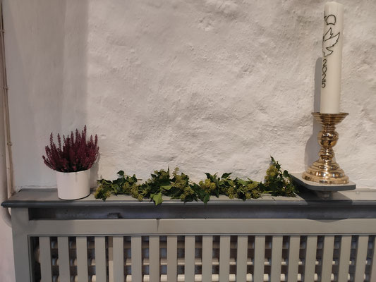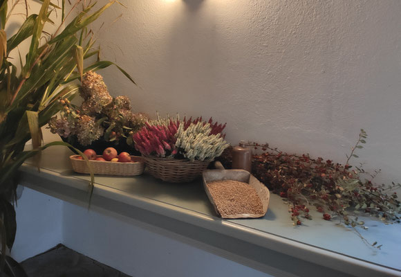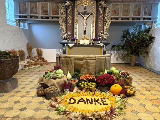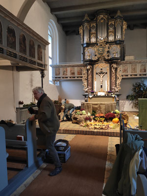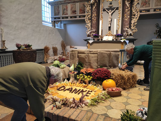Die Grundhofer Landfrauen schmücken die Marienkirche zum Erntedankgottesdienst.
