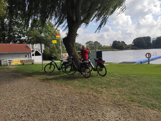 Am See erwartete uns Renate, sie hatte den Kuchen schon mit dem Auto gebracht und vorbereitet, so konnten wir dort picknicken. Nach dieser Pause machten wir uns auf den Heimweg, über Sörupmühle und Schwensby radelten wir wieder nach Dollerup.